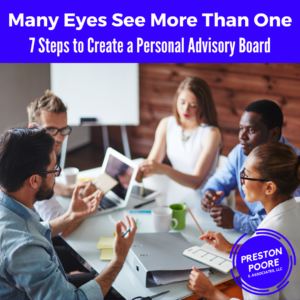 That’s when I got the idea to develop a Personal Advisory Board (PAB). I discovered the concept in the Wall Street Journal about how successful business executives surround themselves with trusted advisors to help the business executive develop and accomplish their goals.